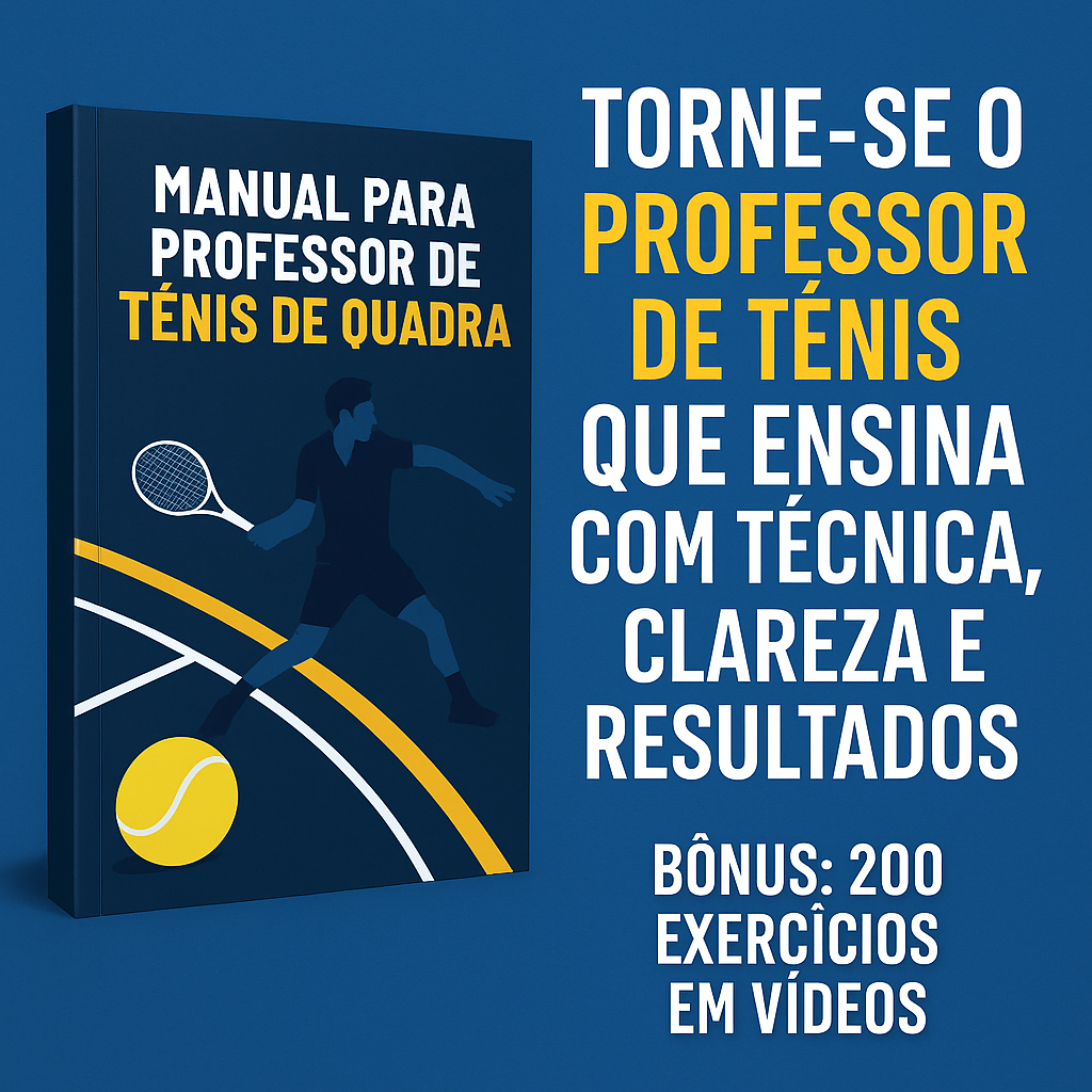 Se você já dá aulas ou quer começar a ensinar tênis com segurança, metodologia e repertório, o Manual para Professor de Tênis de Quadra vai ser o seu novo parceiro dentro e fora da quadra.