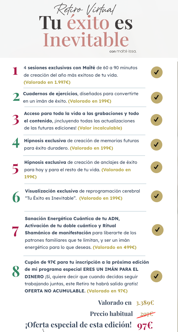 Tendrás el sistema EXACTO para manifestar el mejor año de tu vida, el trabajo o emprendimiento de tus sueños, tu relación soñada, un número en tu cuenta bancaria que te haga feliz, las vacaciones que te mereces, la casa con la que sueñas y todos tus deseos de corazón en el 2026.