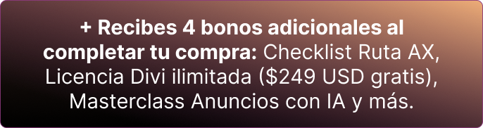 ¿Te gustaría asegurar tu éxito y multiplicar tus ingresos rápidamente? Con este Masterclass, todos podemos generar al menos 300 dólares al mes, lo que te permitirá escalar rápidamente. Esta es el complemento perfecto, una forma eficaz de recaudar dinero inicial en 30 días y para empezar a invertir en tu negocio digital. Añade "Recupera tu inversión en 30 días" a tu compra marcando la casilla.