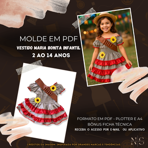 ✨[Molde em PDF] - Vestido Maria Bonita Infantil ID 4273860 [2 ao 14 anos]✨