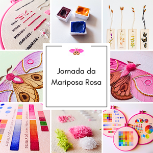 A Jornada da Mariposa Rosa : Curso Completo de Aquarela e Algodão Cru e Bordado Livre para Iniciantes
