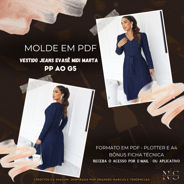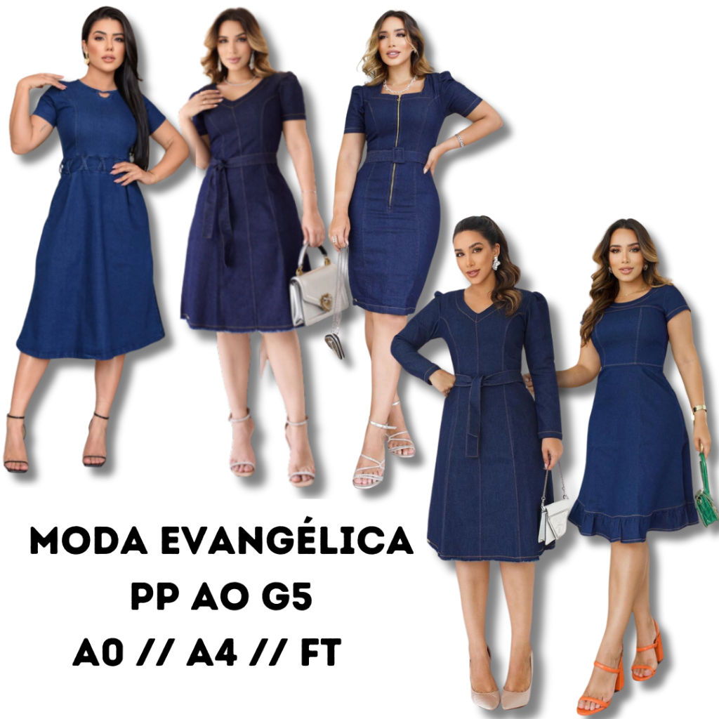 ✨[Molde em PDF] - Vestido Jeans Evasê Ruth ID 4360545 [Moda Evangélica]