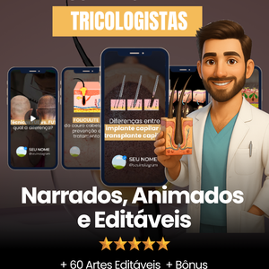 30 Vídeos Narrados, Animados e Editáveis para Tricologistas