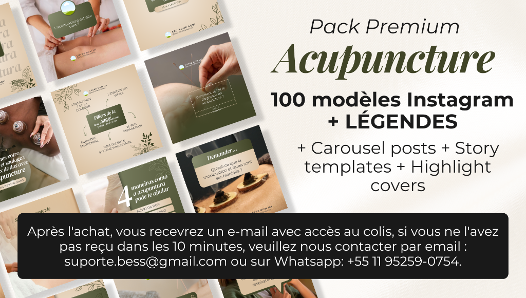 Il existe + 120 modèles professionnels modifiables sur Canva gratuit prêts à télécharger + LÉGENDES prêtes à copier ! Cochez la case ci-dessous pour accéder dès maintenant au Pack Premium Thérapie Holistique, car cette offre de RÉDUCTION exclusive n'est disponible que pour cette page !