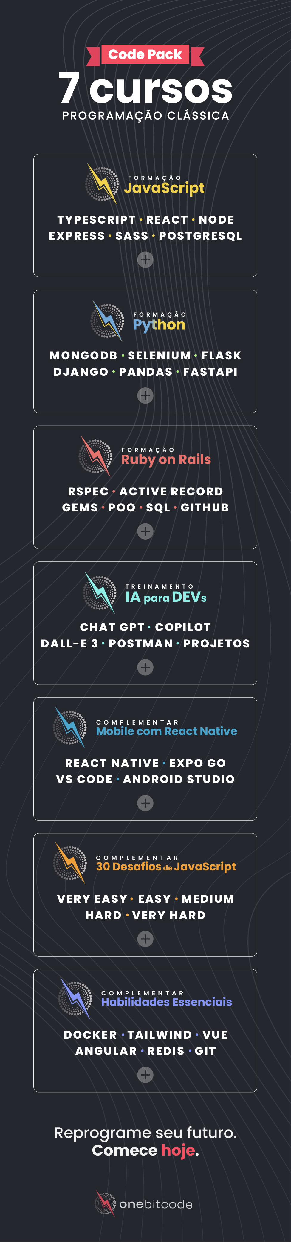 Code Pack Onebitcode - 7 cursos completos de Programação