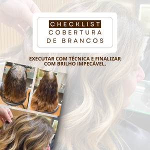 CHECLIST COBERTURA DE BRANCOS - Muitas profissionais travam por medo de manchar, borrar ou perder o brilho do loiro. Com esta apostila em mãos, você terá segurança, previsibilidade e resultados impecáveis, mesmo dentro da rotina corrida do salão