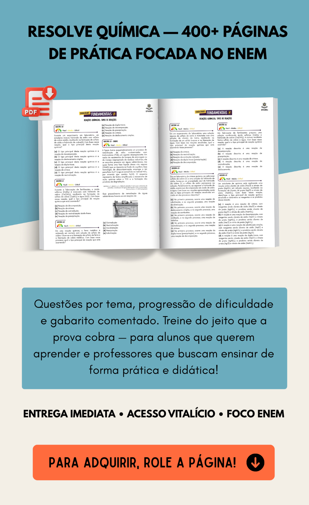 ➕ Adicionar versão editável (Word) – Química Resolve Inclua os arquivos em Word para editar, reorganizar e adaptar os exercícios à sua turma. ✔️ Exercícios editáveis ✔️ Ideal para listas, provas e simulados ✔️ Uso pedagógico permitido ☑️ Adicionar material editável (valor adicional)