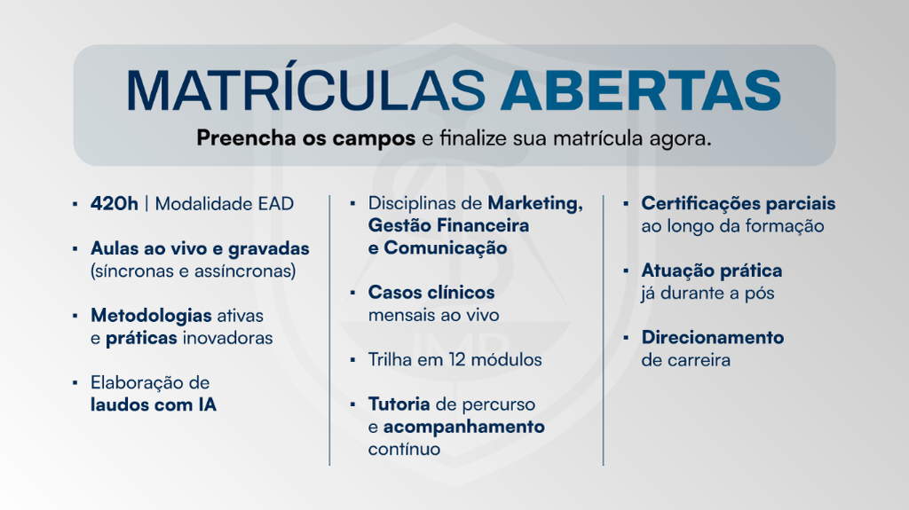 Matrícula - Pós-Graduação em Perícia Médica Judicial (PMJ)