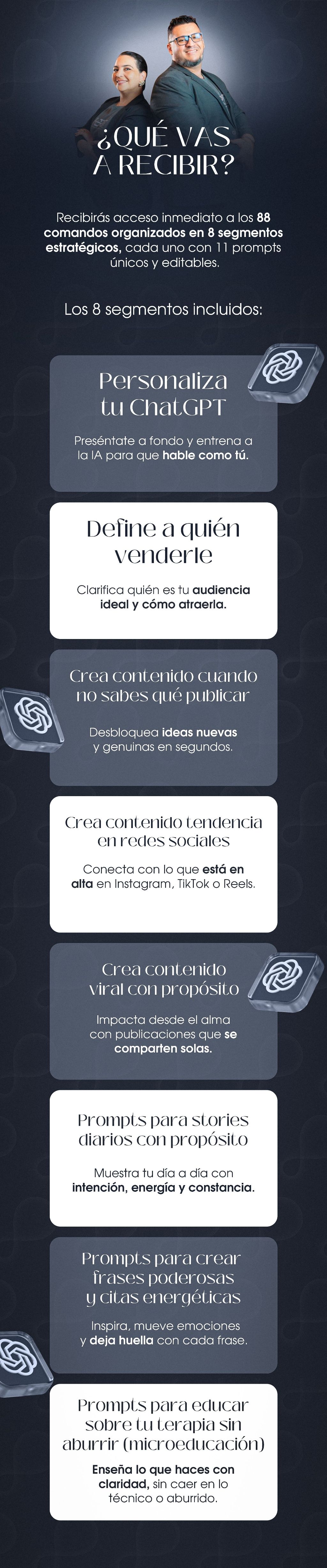Aprovecha este Mega Pack con 11 Pormpts y aprende a vender tus terapias con autenticidad, energía y conversión.