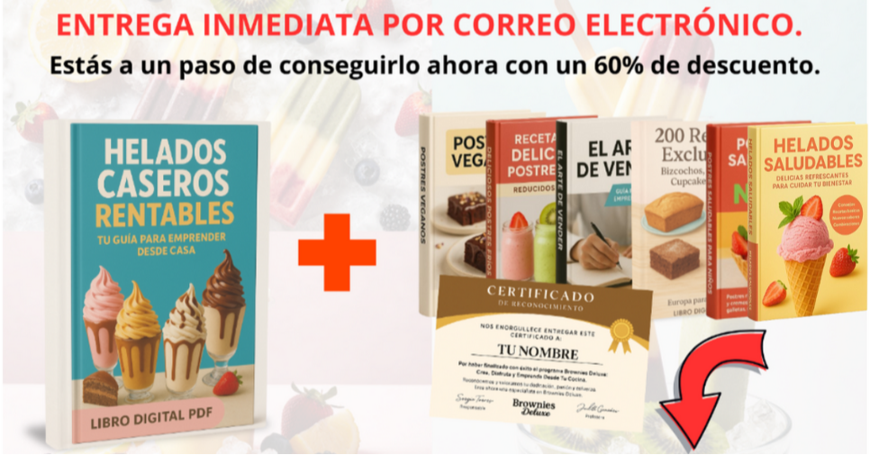 Más de 150 recetas exclusivas, con instrucciones paso a paso, tips profesionales y beneficios nutricionales. El pack ideal para quienes desean emprender, aprender y disfrutar del arte de la heladería saludable desde casa. Helados y Paletas para Diabéticos Helados Veganos Hechos en Casa Yogurt y Helados Sin Gluten
