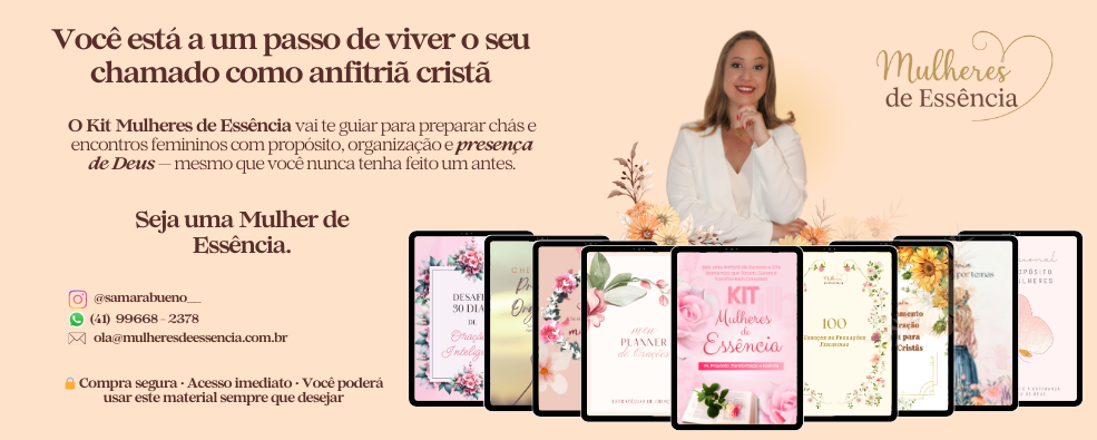 Descubra exatamente o que dizer, como abordar e como convidar com segurança e naturalidade, para encher seu chá ou encontro de mulheres sem vergonha, sem medo de rejeição e sem travar na hora de chamar. O complemento ideal do Kit Mulheres de Essência para transformar intenção em presença real.