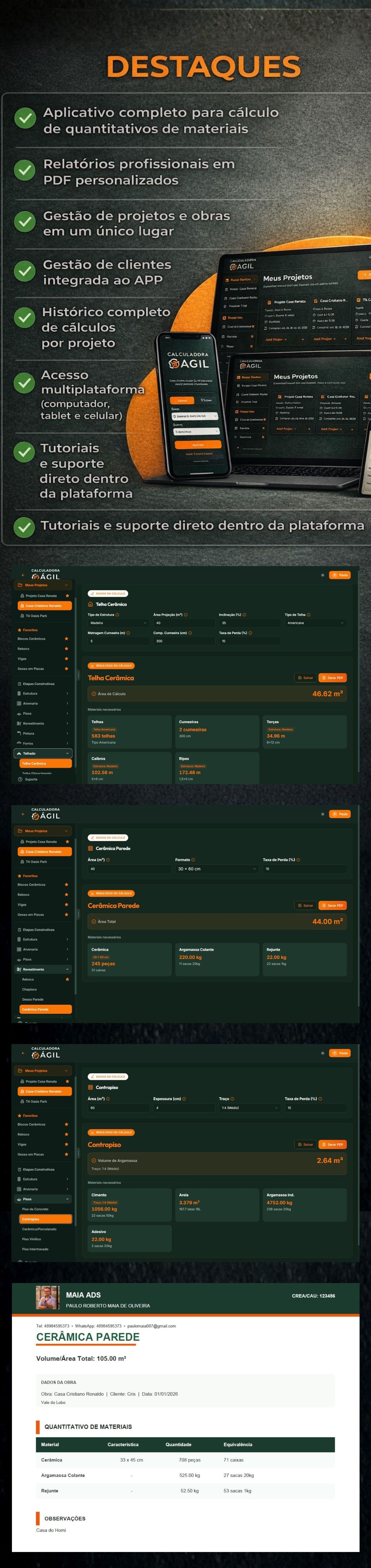 ⚠️ 83% dos usuários da Calculadora Ágil adicionam este pack complementar para profissionalizar a entrega ao cliente. Com o Pack Obra Profissional – Do Cálculo à Entrega, seus levantamentos deixam de ser apenas números e passam a ser documentos técnicos, organizados e confiáveis. 📄 Inclui 5 modelos editáveis: Proposta Comercial Contrato de Prestação de Serviços Ficha de Vistoria Termo de Recebimento Termo de Quitação Técnica Mais credibilidade, profissionalismo, valor percebido e menos riscos