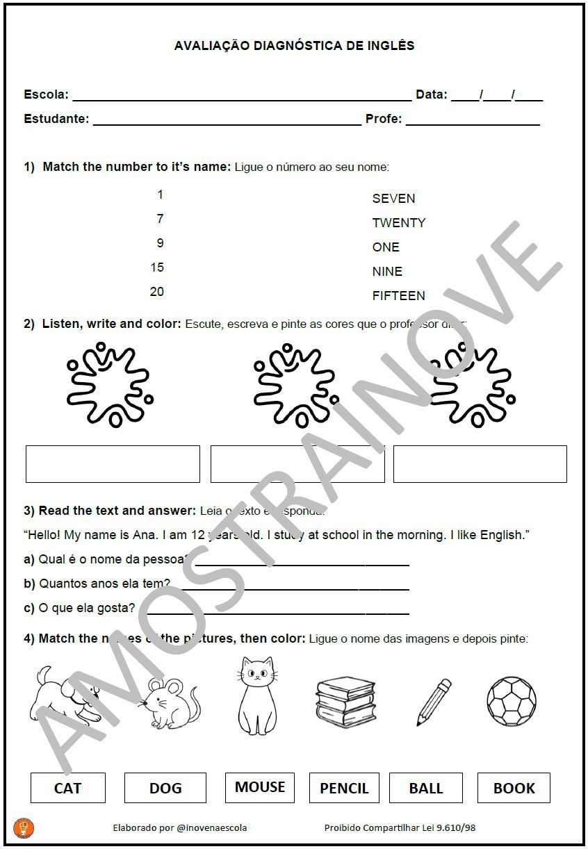 Inglês 5ºano Atividades Adaptadas - 2