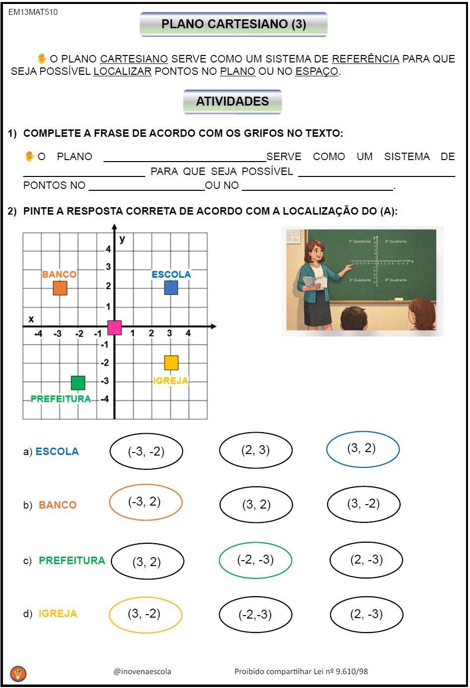 Avaliação de Matemática 1 - 7º ano