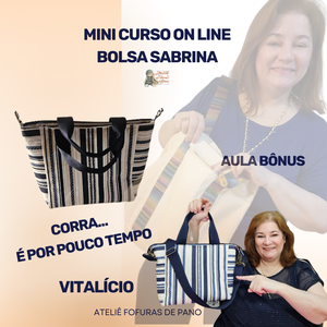 Promoção de Lançamento por tempo limitado! Mini Curso On Line: Técnica de Costura para Bolsas com Acabamento Impecável Descrição: Neste mini curso, você aprenderá a criar bolsas com fechamento na parte de cima e acabamentos perfeitos + Aula Bônus Eco Bag.