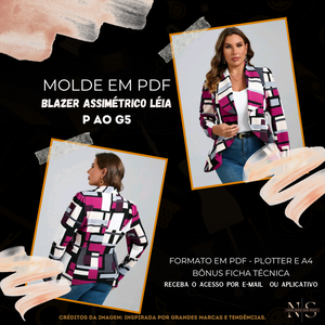 🧵[Molde em PDF] - Blazer Assimétrico Léia ID 4283990 [P ao G5]✨