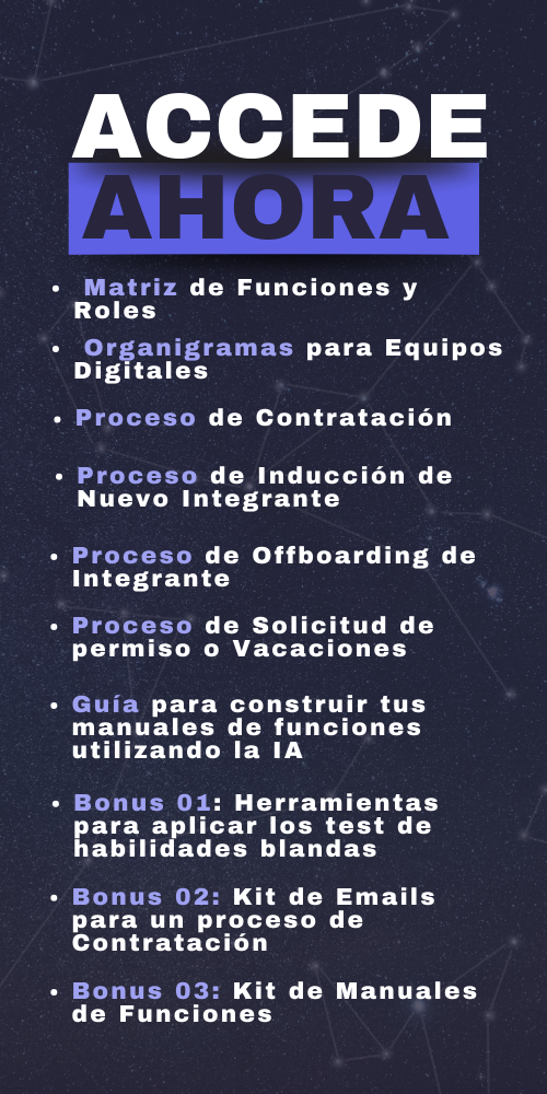 Elimina la incertidumbre en tus procesos de contratación y descubre cómo evaluar habilidades con precisión y profesionalismo. Todo en una guía práctica y lista para usar. Accede a un solo click a una biblioteca completa con ejercicios y modelos para diseñar y aplicar evaluaciones técnicas que realmente midan las habilidades de los candidatos en tus procesos de contratación. Ahorra tiempo, evita malas contrataciones y asegúrate de sumar a tu equipo a los mejores talentos.