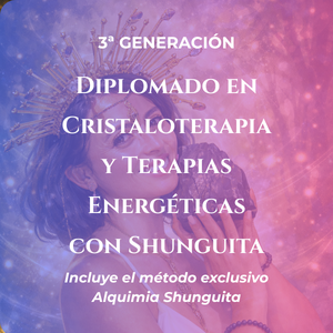 Diplomado en Cristaloterapia y Terapias Energéticas con Shunguita (3ª generación). Formación online de 5 meses con acceso al aula virtual, mentorías y doble certificación. Incluye el método exclusivo Terapia Alquimia Shunguita.