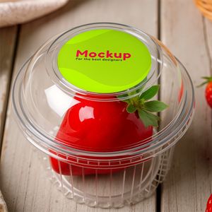 Mockup de pote de morango do amor no cenário de madeira com zoom