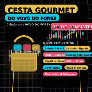 A Cesta Gourmet do Vovô do Forex é o meu programa completo (HI TICKET) pra quem quer operar no MT5 com processo profissional, usando o ecossistema inteiro de ferramentas do Vovô — do timing de entrada até gestão avançada, leitura de liquidez e automação.