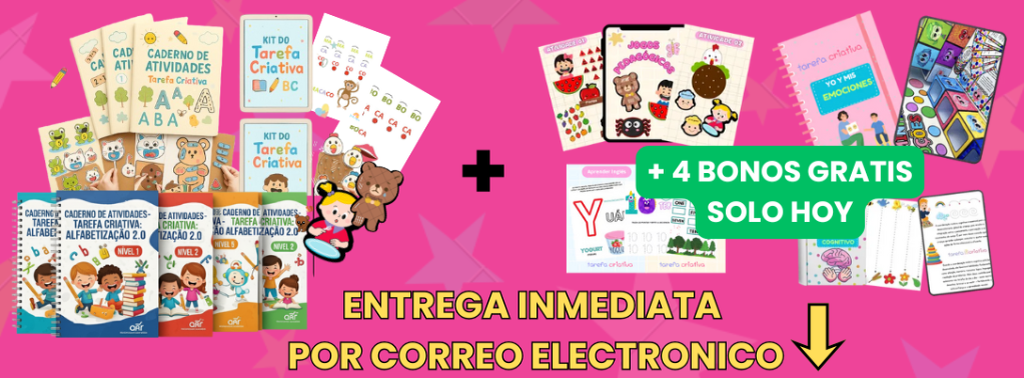 📚 ¿Quieres acelerar el aprendizaje de tu hijo? ¡Incluye el Kit Educación Tareas Creativas! Con más actividades, este kit hace que el aprendizaje sea divertido y envolvente, ofreciendo ejercicios para desarrollar lectura, escritura y creatividad. 🟢¡Añádelo ahora con un descuento especial en el checkout y transforma el aprendizaje en una experiencia completa!