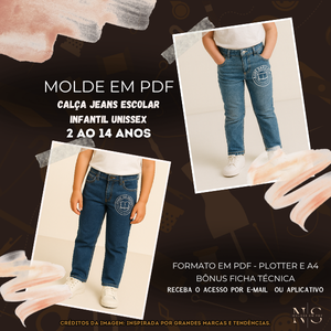 ✨NS Molde em PDF - Calça Jeans Escolar Infantil Unissex ID 6510762 [2 ao 14 anos]✨