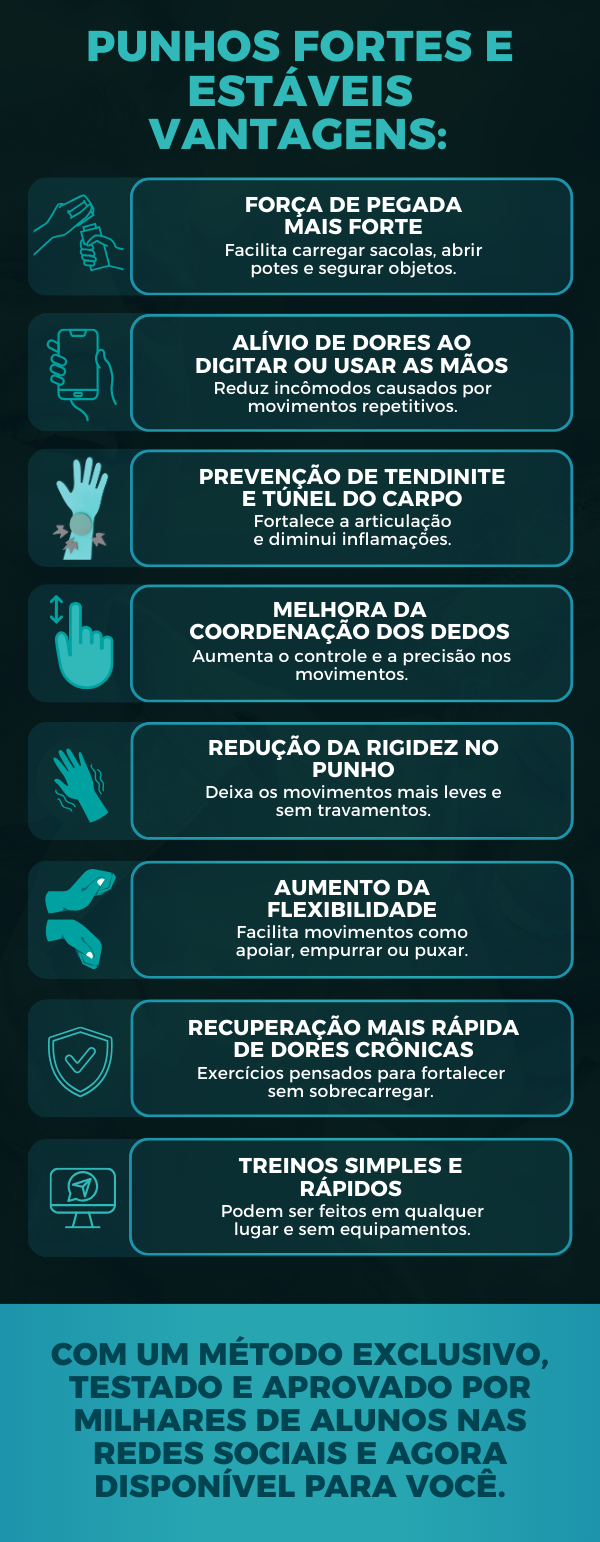 Ebook “Punhos Fortes e Estáveis” - Diga adeus à rigidez nos punhos — recupere precisão, força e liberdade de movimento.