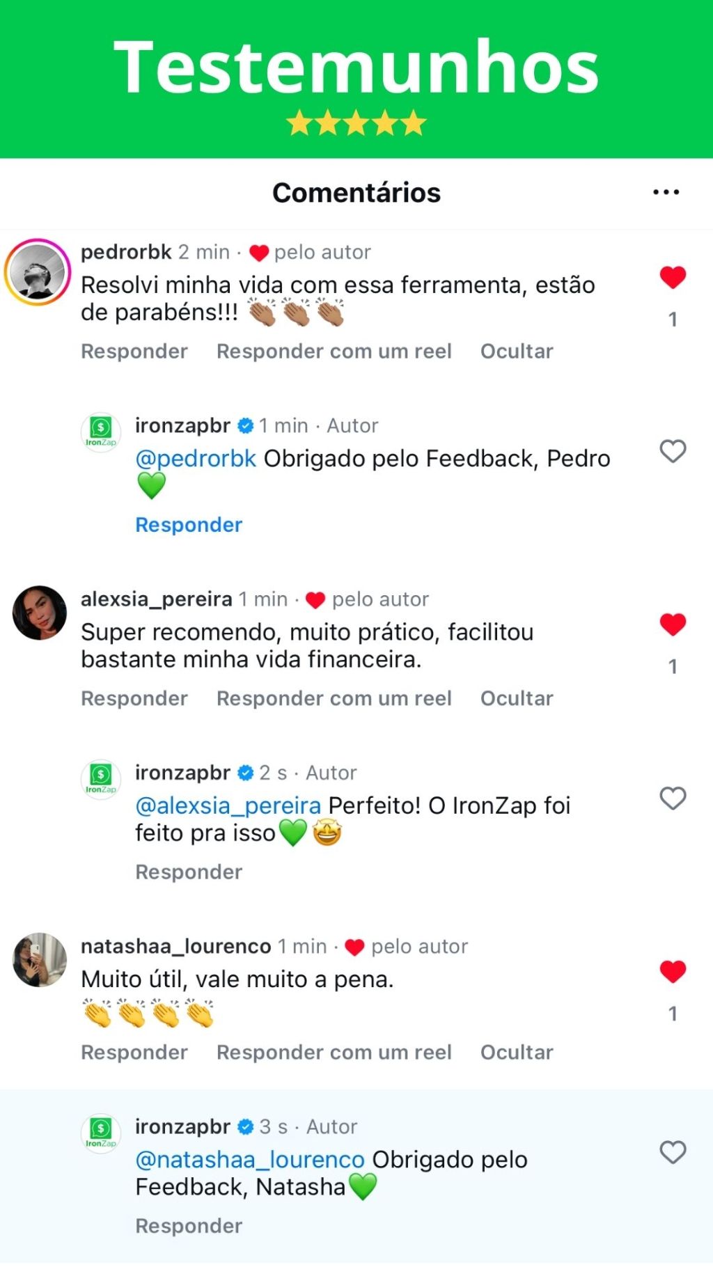 "Sem dúvida, a melhor aplicação financeira que já utilizei! Em poucos segundos organizo tudo e fico com o controlo do meu dinheiro. Já recomendei a toda a gente! Simplesmente apaixonada🥰💚"