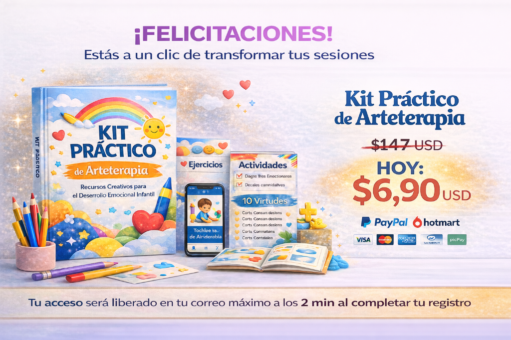 👉 Kit Práctico de Arteterapia Infantil + 5 Bonos Profesionales para Sesiones Terapéuticas