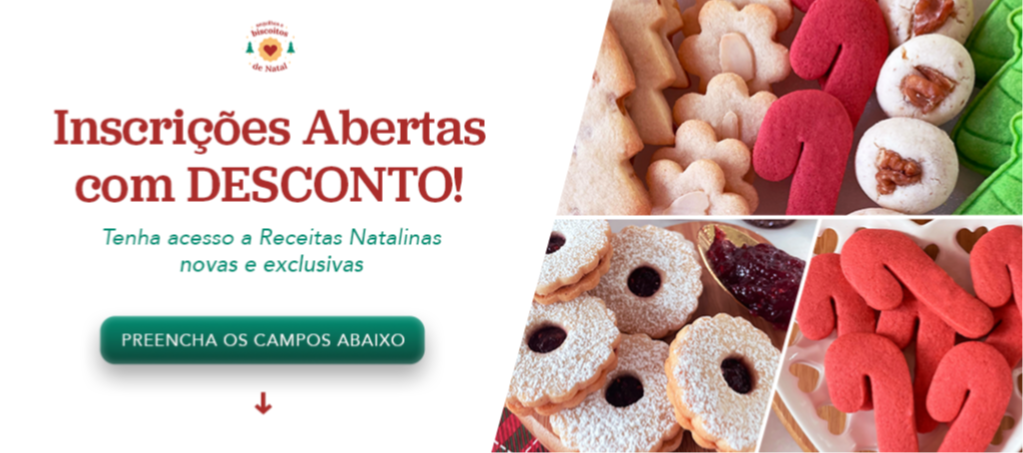 🚨 [OFERTA EXCLUSIVA!] 🚨 Leve junto meu curso de Biscoitos de Natal para biscoiteira, +10 receitas para biscoiteira com tema e sabores natalinos. ⚠️ ATENÇÃO: Essa é a única vez que você vai ver essa oferta!