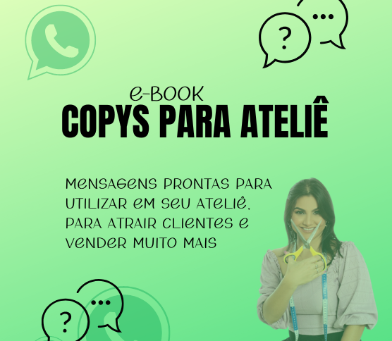 Para resolver isso, preparei um e-book com dezenas de mensagens prontas, simples e adaptáveis, para você usar no WhatsApp, Instagram e atendimento do seu ateliê.
