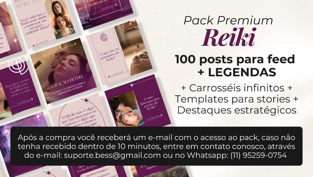 São + de 120 templates profissionais editáveis no Canva gratuito prontos para baixar + LEGENDAS prontas para copiar! Marque a caixa abaixo para acessar agora o Pack Premium Terapia Holistica, pois essa oferta com DESCONTO exclusivo está disponÃvel somente para essa página!