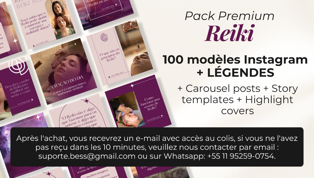 Il existe + 120 modèles professionnels modifiables sur Canva gratuit prêts à télécharger + LÉGENDES prêtes à copier ! Cochez la case ci-dessous pour accéder dès maintenant au Pack Premium Thérapie Holistique, car cette offre de RÉDUCTION exclusive n'est disponible que pour cette page !