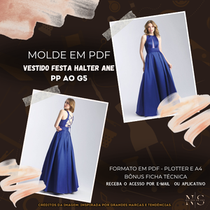 ✨NS Molde em PDF - Vestido Festa Halter Ane ID 4412564 [PP ao G5]✨