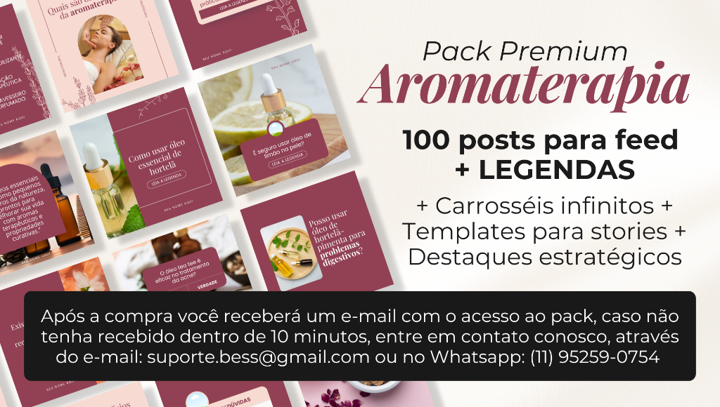 São + de 120 templates profissionais editáveis no Canva gratuito prontos para baixar + LEGENDAS prontas para copiar! Marque a caixa abaixo para acessar agora o Pack Premium Terapia Holística, pois essa oferta com DESCONTO exclusivo está disponível somente para essa página!