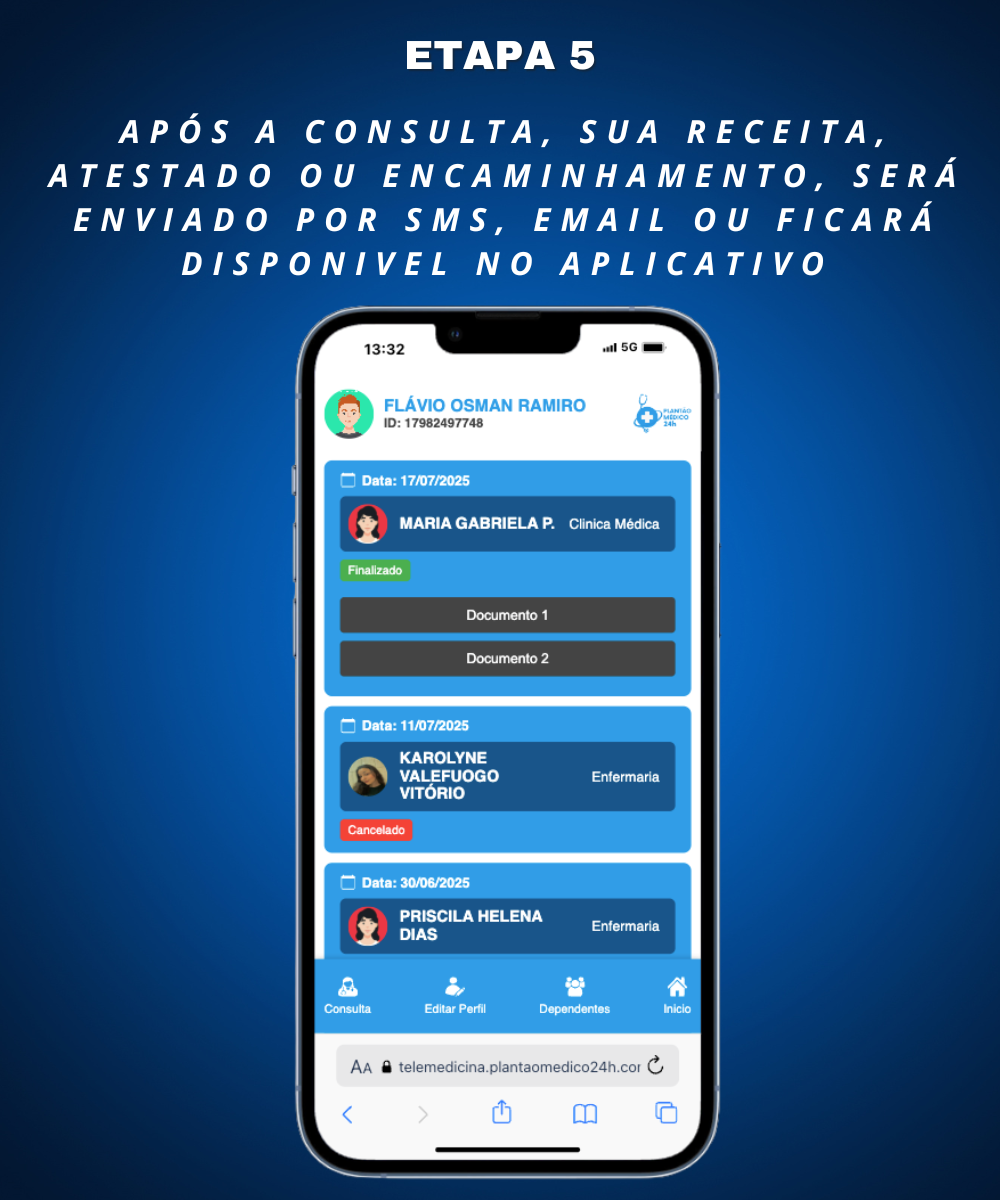 🔒 Último passo para proteger toda a sua família! Por apenas R$ 97,90/mês , você e até 3 dependentes terão acesso ilimitado ao Plantão Médico 24h: consultas com médicos generalistas, encaminhamentos gratuitos para especialistas e tranquilidade garantida,