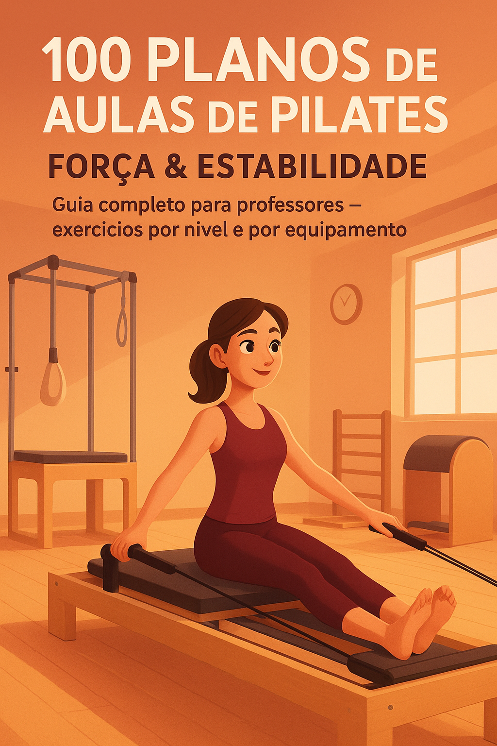 Um super guia com 100 planos de aulas prontos, organizados por equipamento e por nível, para você aplicar imediatamente no seu estúdio — sem improviso, sem travar e sem perder tempo criando sequências do zero.
