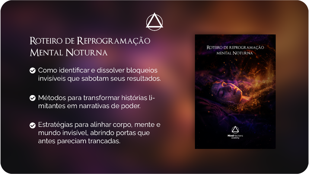 Liberte-se dos comandos invisíveis que controlam sua vida. Assuma de volta o poder de programar sua mente, mudar sua frequência e manifestar com intenção real. No Kit da Mente Mestra, você vai acessar 4 materiais exclusivos: - Manual de Sugestão do Subconsciente - As Raízes dos Bloqueios - Manual da Mente Magnética - Transformando Sonhos em Números
