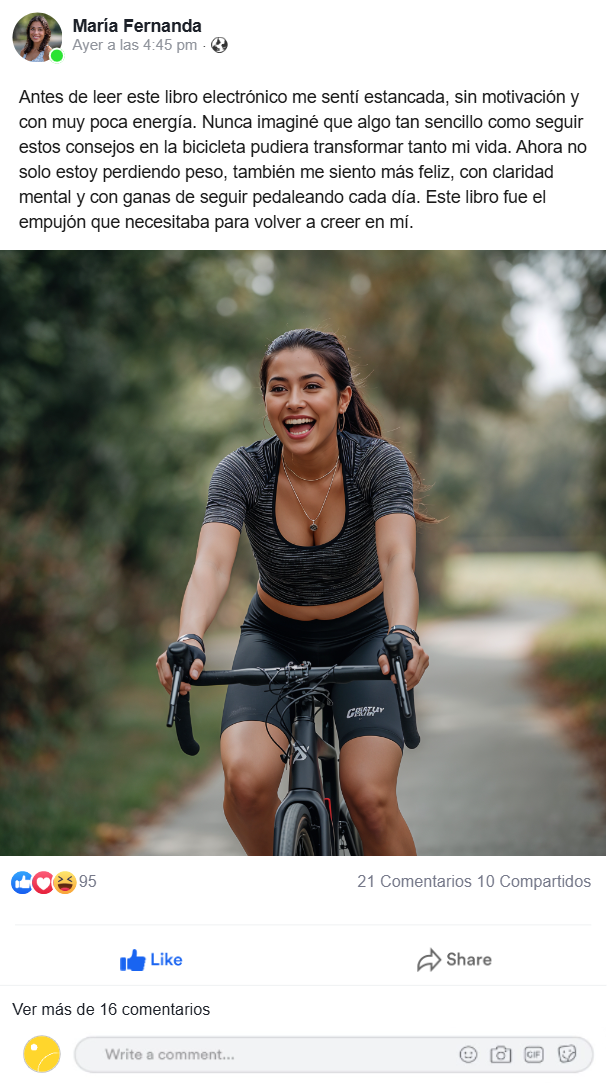 👉 Llévate por solo $3.90 un recetario exclusivo con más de 20 comidas fáciles, nutritivas y rápidas. Perfectas para antes, durante y después de tus entrenamientos en bici. (Optimiza tu quema de grasa con la nutrición adecuada).