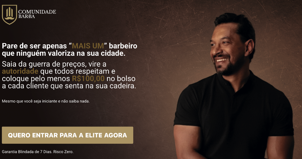 Vou te ensinar o degradê na horizontal, vertical e diagonal. Você vai pegar aquele cliente de barba falhada e vender um projeto de crescimento pra ele. Você lucra enquanto a barba dele cresce. Ninguém ensina isso.