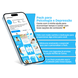 Pack Canva - Psicologia e Depressão | Posts com conteúdos nichados e editáveis para perfil do Instagram e Redes Sociais