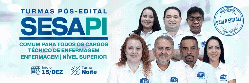 CURSO PÓS-EDITAL SESAPI - COMUM PARA TODOS OS CARGOS/DISCIPLINAS BÁSICAS - NOITE - TRANSMISSÃO AO VIVO (ONLINE/GRAVADO)