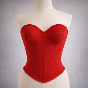 Un bustier estructurado con escote corazón y copas con corte en línea, diseñado para estilizar el torso y definir la silueta con elegancia.