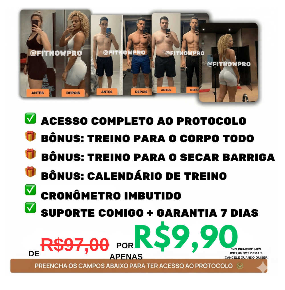 🎉 Parabéns! Desconto de Boas-Vindas Aplicado com Sucesso. Você garantiu seu primeiro mês de acesso total ao FITNOWPRO por apenas R$ 9,90. (