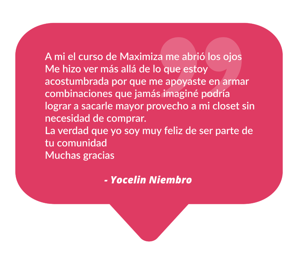 Implementa todos los tips, experimenta con todos los consejos y si no te sientes con mucho más opciones de looks sin comprar ropa nueva, con más confianza de lo que te estás poniendo todos los días, con la seguridad de que le estás sacando el mayor provecho a cada prenda y extremadamente feliz con todo lo que estás aprendiendo…