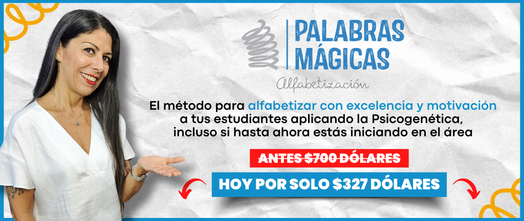 El Método Palabras Mágicas es un método completo que ayuda a maestras(os) a Alfabetizar con Excelencia y Motivación a sus estudiantes aplicando la Psicogenética, incluso si hasta ahora estás iniciando en el área.