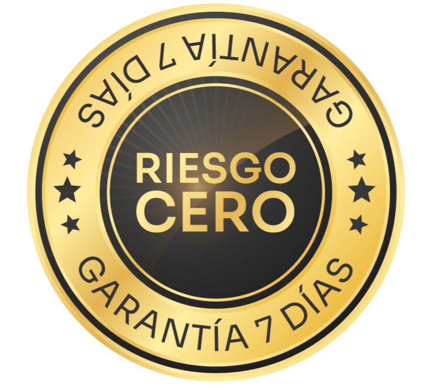 Es decir, que a partir de la compra tendrás 7 días para ver el curso completo y si por algún motivo no te gusta, no conectas con el método o simplemente no era lo que buscabas, podrás solicitar el reembolso del 100% de tu dinero sin pregunta alguna.