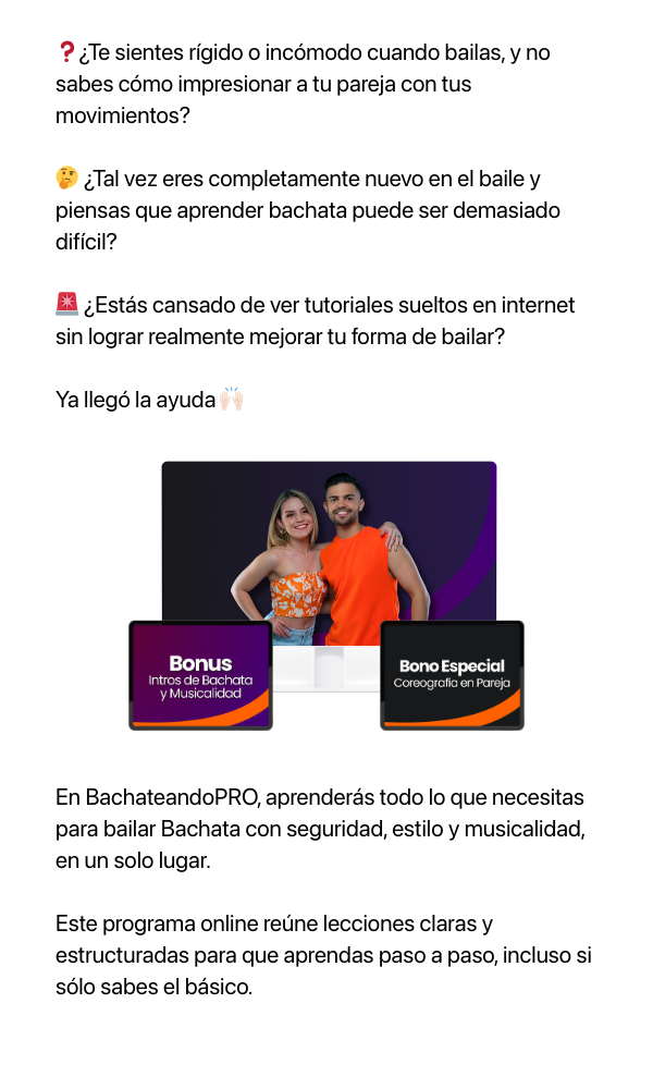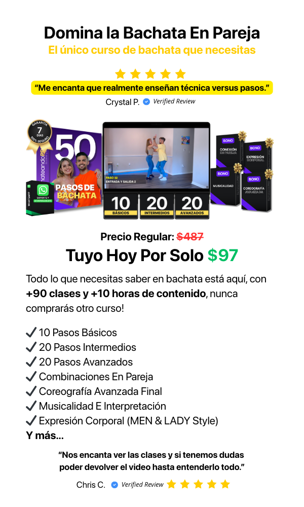 ‼️ OFERTA DISPONIBLE SOLO EN ESTA PÁGINA ‼️ Agrega BachataCLUB con un 75% de descuento y aprende totalmente desde cero en sólo 30 días. Perfecto si quieres empezar con toda desde el principio 🚀