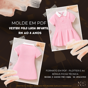 ✨NS Molde em PDF - Vestido Polo Luisa Infantil RN ID 3984095 [RN ao 4 anos]✨