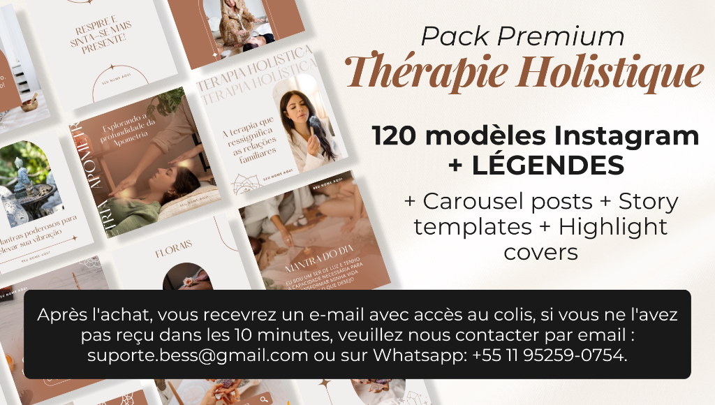 Il existe + 100 modèles professionnels modifiables sur Canva gratuit prêts à télécharger + LÉGENDES prêtes à copier ! Cochez la case ci-dessous pour accéder dès maintenant au Pack Premium Psychothérapie, car cette offre de RÉDUCTION exclusive n'est disponible que pour cette page !